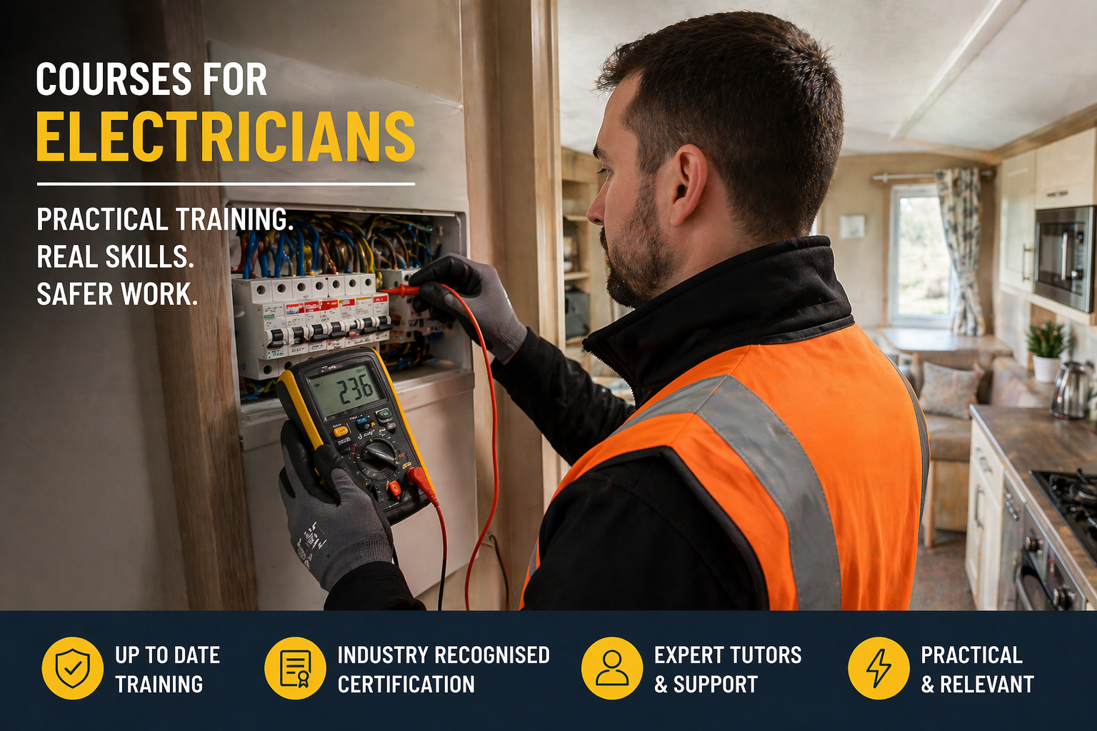 We are based in north of England but travel nationally hosting training sessions on GS6, Approved Person for Airports, NHS and military sites, Caravan electrical assessments and training, BS7671 update courses and more. Want to know more? Get in touch today.